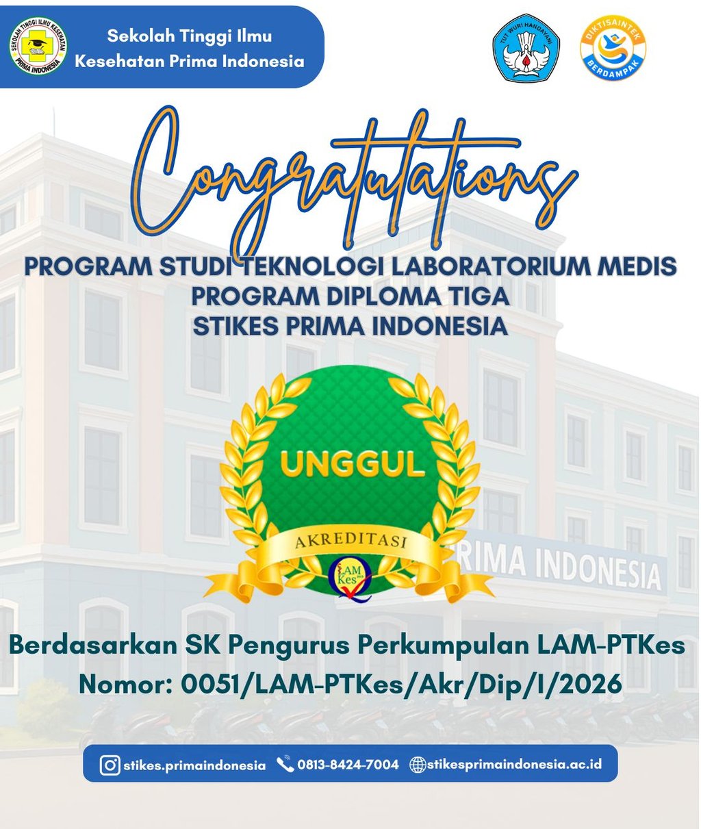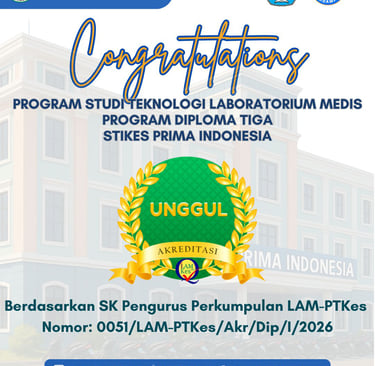 Dengan penuh rasa syukur, Program Studi Teknologi Laboratorium Medis Program Diploma Tiga STIKes Prima Indonesia secara resmi telah meraih Akreditasi UNGGUL dari LAM-PTKes.