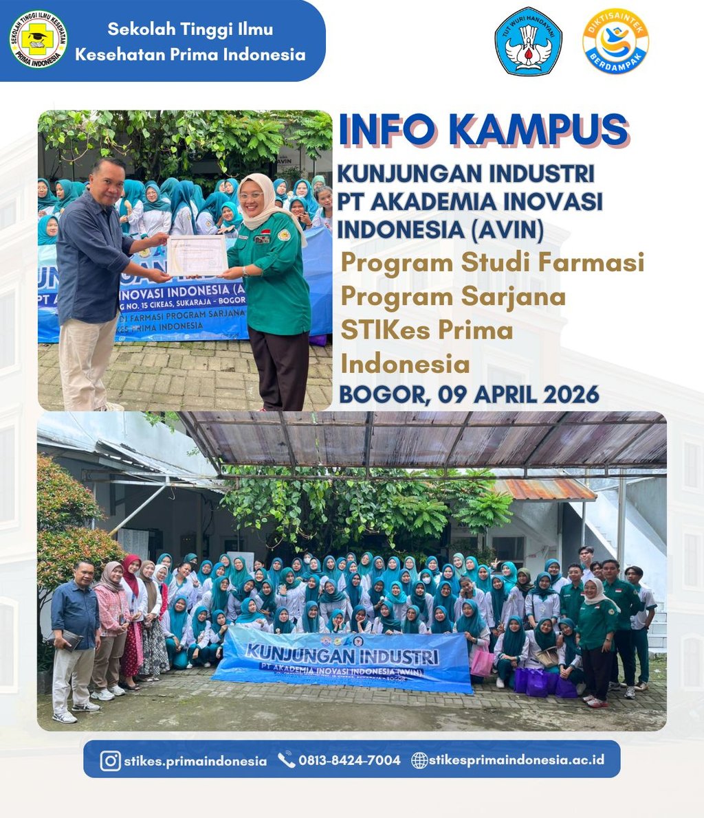 Kunjungan Industri Program Studi Farmasi Program Sarjana STIKes Prima Indonesia ke PT Akademia Inovasi Indonesia (AVIN) telah sukses dilaksanakan pada 09 April 2026 di Bogor.