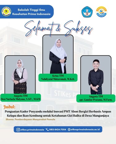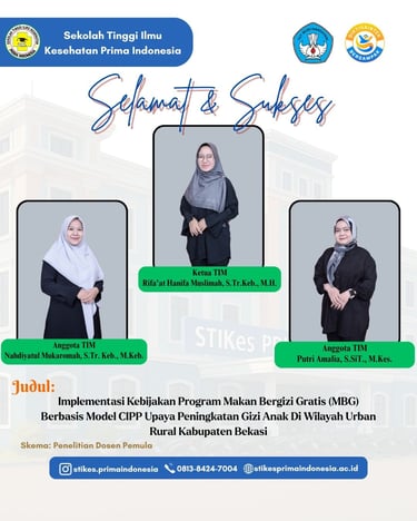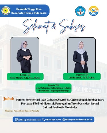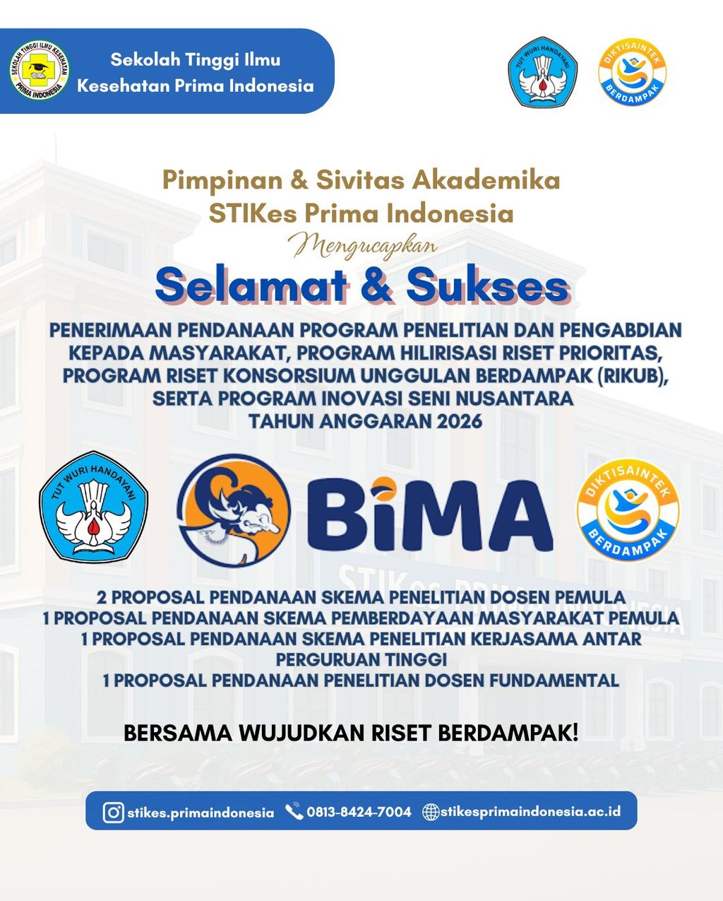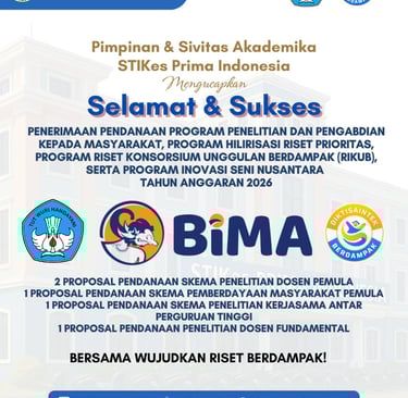Pimpinan dan Sivitas Akademika STIKes Prima Indonesia mengucapkan selamat atas capaian luar biasa dalam Penerimaan Pendanaan Program Penelitian dan Pengabdian kepada Masyarakat Tahun Anggaran 2026 melalui program BIMA.