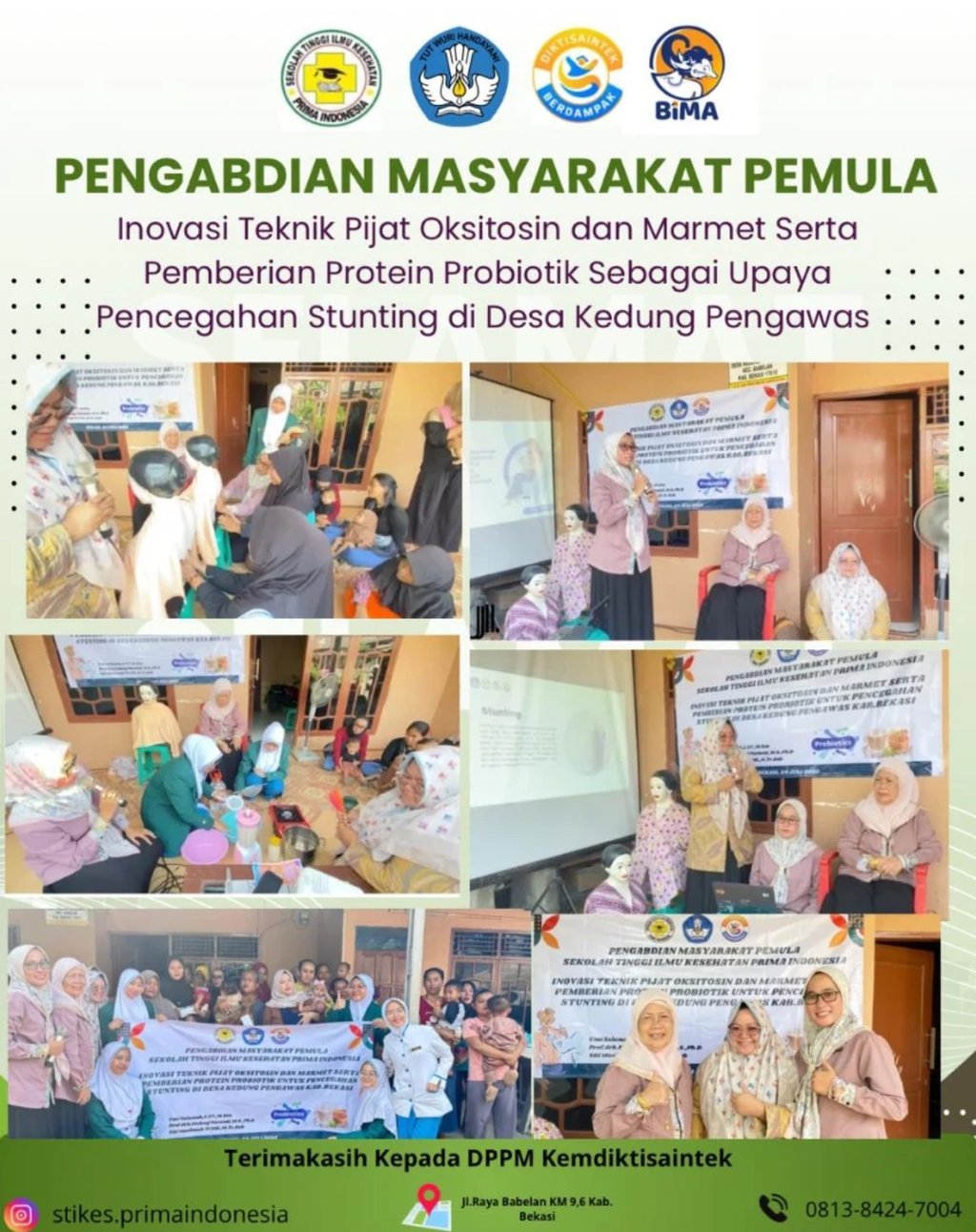 Inovasi Teknik Pijat Oksitosin dan Marmet Serta Pemberian Protein Probiotik Sebagai Upaya pencegahan Stunting di Desa Kedung Pengawas