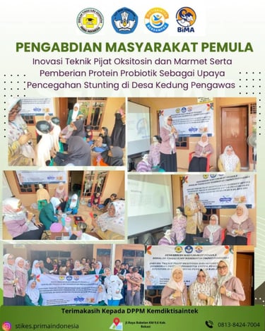 Kegiatan ini mengusung inovasi pijat oksitosin dan teknik marmet sebagai metode peningkatan produksi ASI, serta pemberian protein probiotik untuk mendukung gizi optimal anak sejak usia dini. Kami percaya bahwa dengan edukasi dan intervensi yang tepat, para ibu dapat lebih percaya diri dalam memberikan ASI eksklusif dan mampu memenuhi kebutuhan gizi anak secara optimal, sehingga pertumbuhan dan perkembangan anak dapat berlangsung secara sehat dan maksimal.