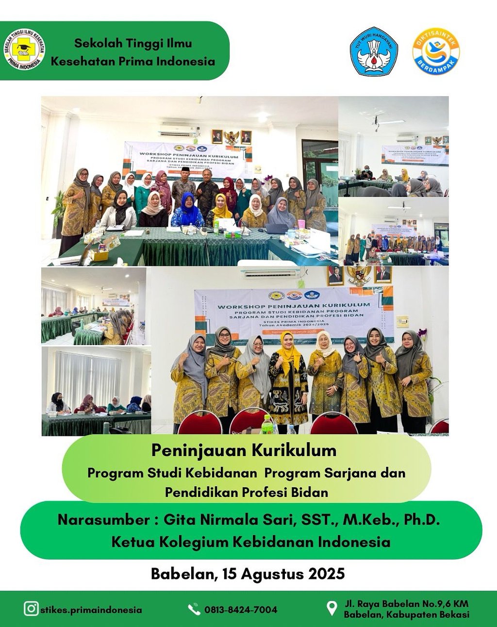 Kegiatan Peninjauan Kurikulum Program Studi Kebidanan Program Sarjana dan Pendidikan Profesi Bidan dilaksanakan pada Jumat, 15 Agustus 2025, bertempat di Aula STIKes Prima Indonesia. Kegiatan ini menghadirkan Gita Nirmala Sari, SST., M.Keb., Ph.D., selaku Ketua Kolegium Kebidanan Indonesia, sebagai narasumber utama.