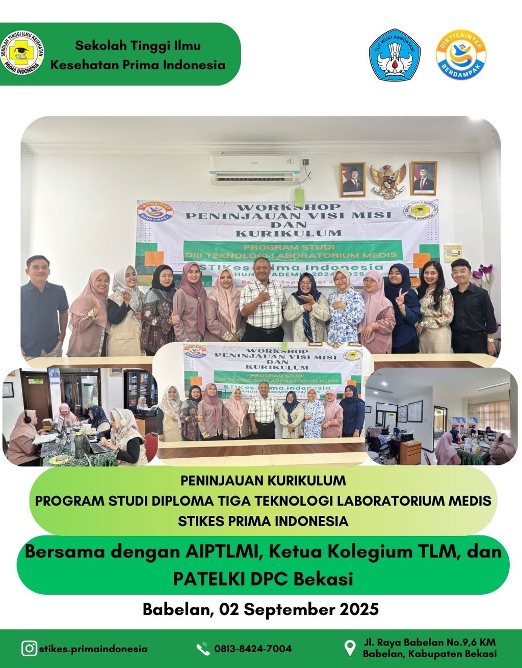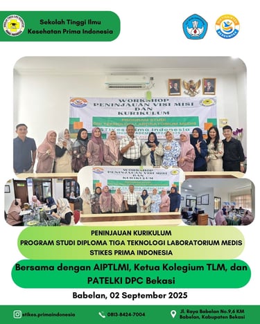 Selasa, 02 September 2025, telah dilaksanakan kegiatan Peninjauan Kurikulum Program Studi Diploma Tiga Teknologi Laboratorium Medis STIKes Prima Indonesia yang bertempat di Aula STIKes Prima Indonesia.