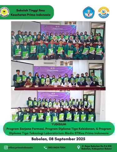 Senin, 8 September 2025, Sekolah Tinggi Ilmu Kesehatan Prima Indonesia menyelenggarakan Yudisium Program Sarjana Farmasi, Program Diploma Tiga Kebidanan, dan Program Diploma Tiga Teknologi Laboratorium Medis yang bertempat di Aula STIKes Prima Indonesia.